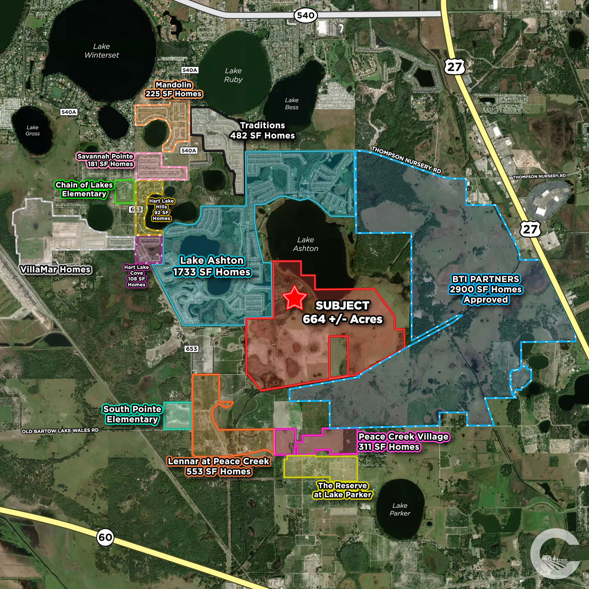 Situated in NW Lake Wales/SE Winter Haven, the 664 Acres Lake Wales Master Planned Community offers a prime investment opportunity. The assemblage of 664 acres makes a very attractive master-planned community surrounding the south half of Lake Ashton. The entire property could yield up to 3,120 homes and recreation areas in Lake Wales. The property is in the Utility Service Area of Lake Wales and utilities are adjacent to the property.